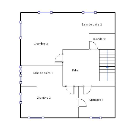 Les étages desservent quatre grandes suites, chacune avec salle d’eau ou salle de bains et WC privatifs. Un bureau supplémentaire peut être transformé en dressing ou en chambre selon les besoins. Une buanderie complète l’ensemble.